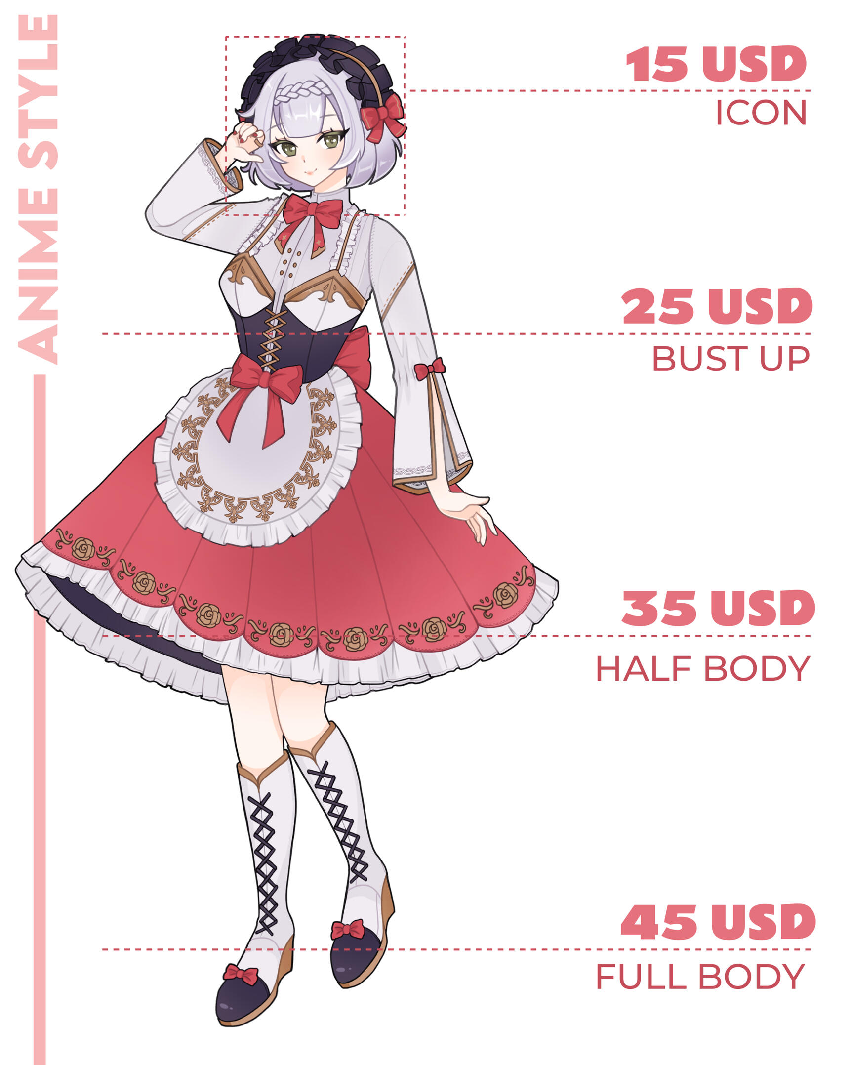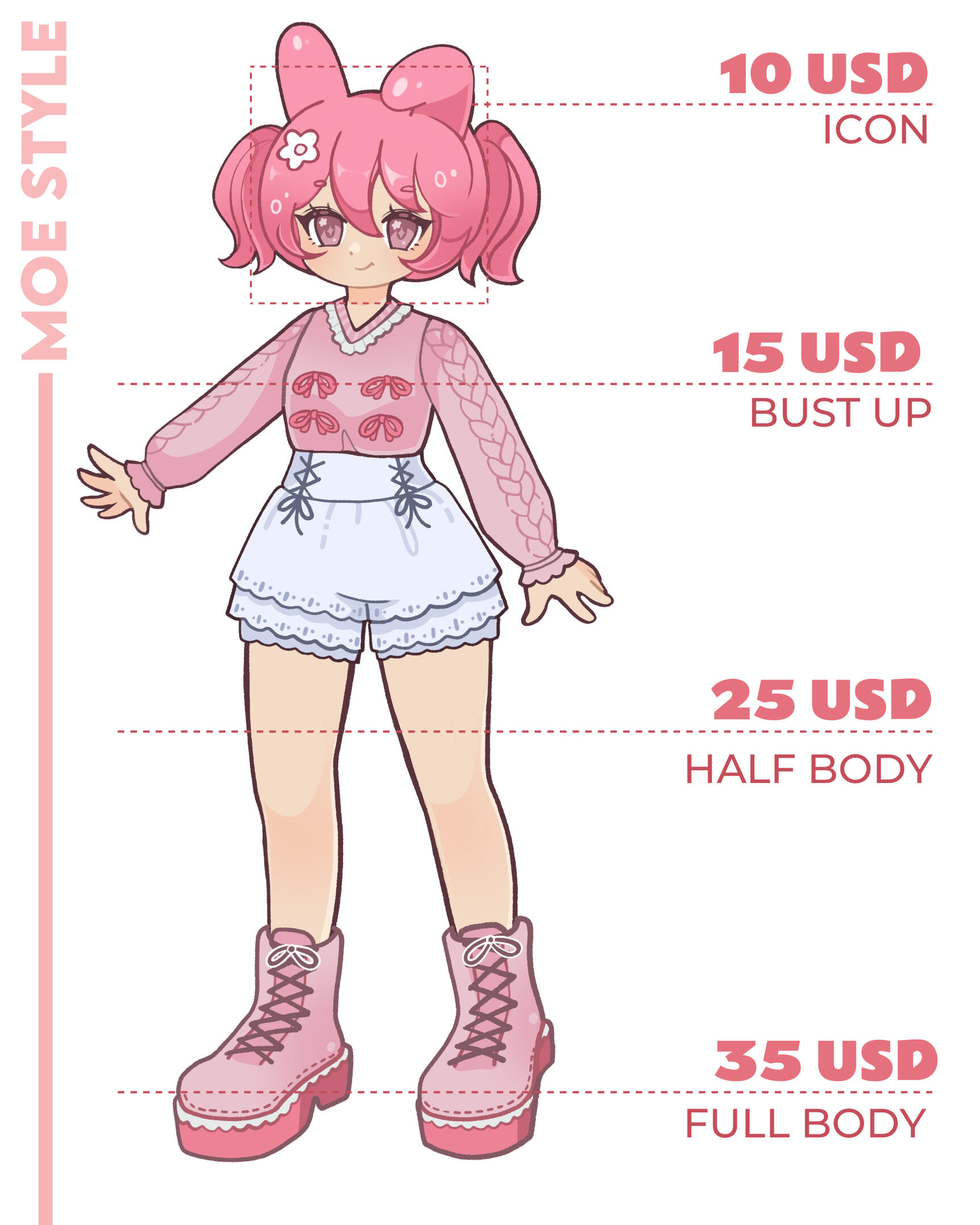 These prices are only for personal use commissions. For commercial use, the final price x2.